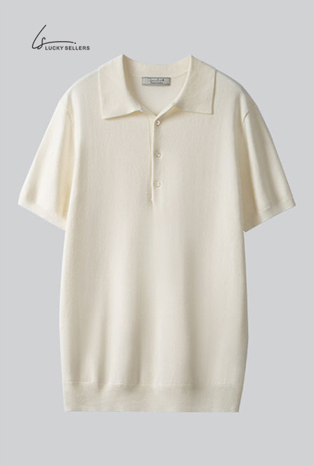 100% Cotton Thin Short Sleeve Button Lapel Polo Shirt Knitted Business Casual Slim Fit Men's T-shirt
