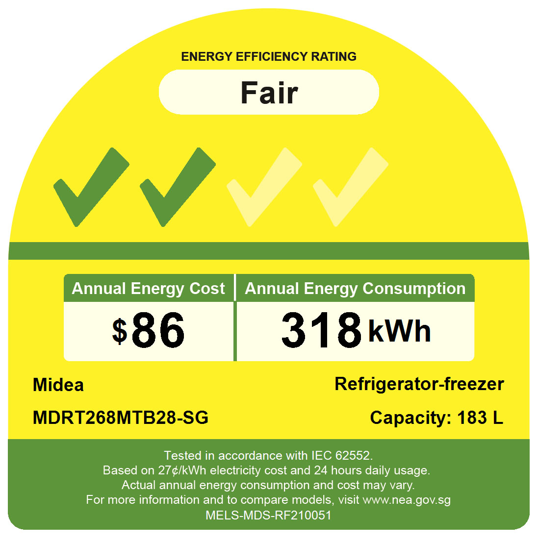 [Bulky] Midea MDRT268MTB28-SG Black Top Mounted Fridge, 183L, Energy Rating 2 Ticks