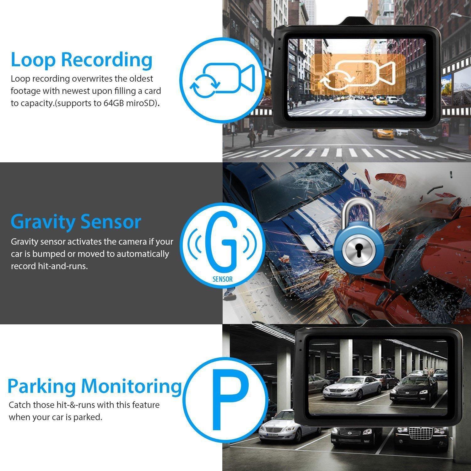 -Auto Record, once the vehicle powers on, can automatically turn on and record; Automatically shuts off when the vehicle is turned off.