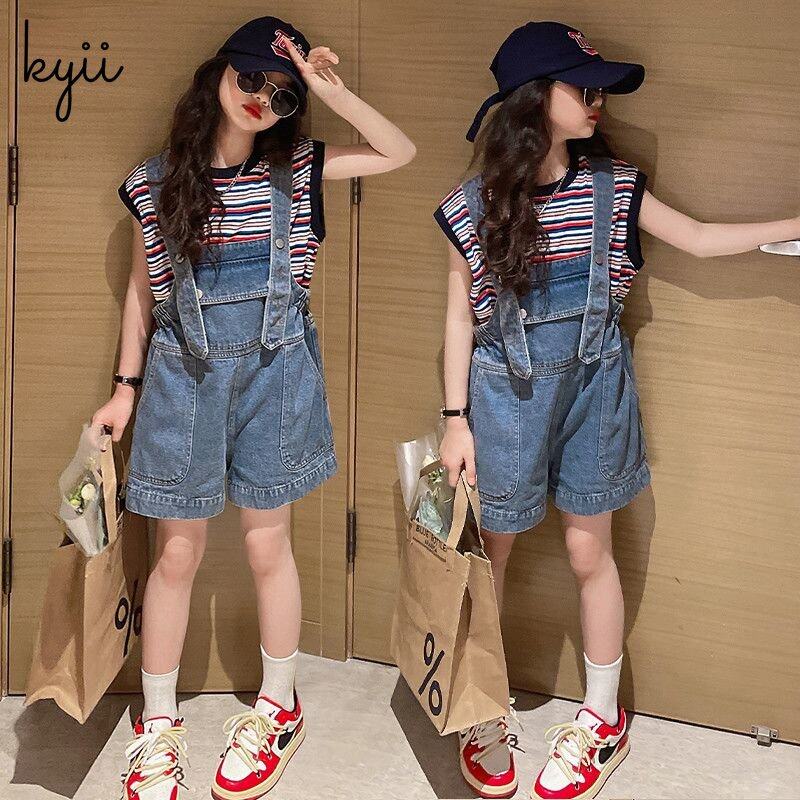 KYII Girls set two-piece Sleeveless Round-neck top children Set kyii0185