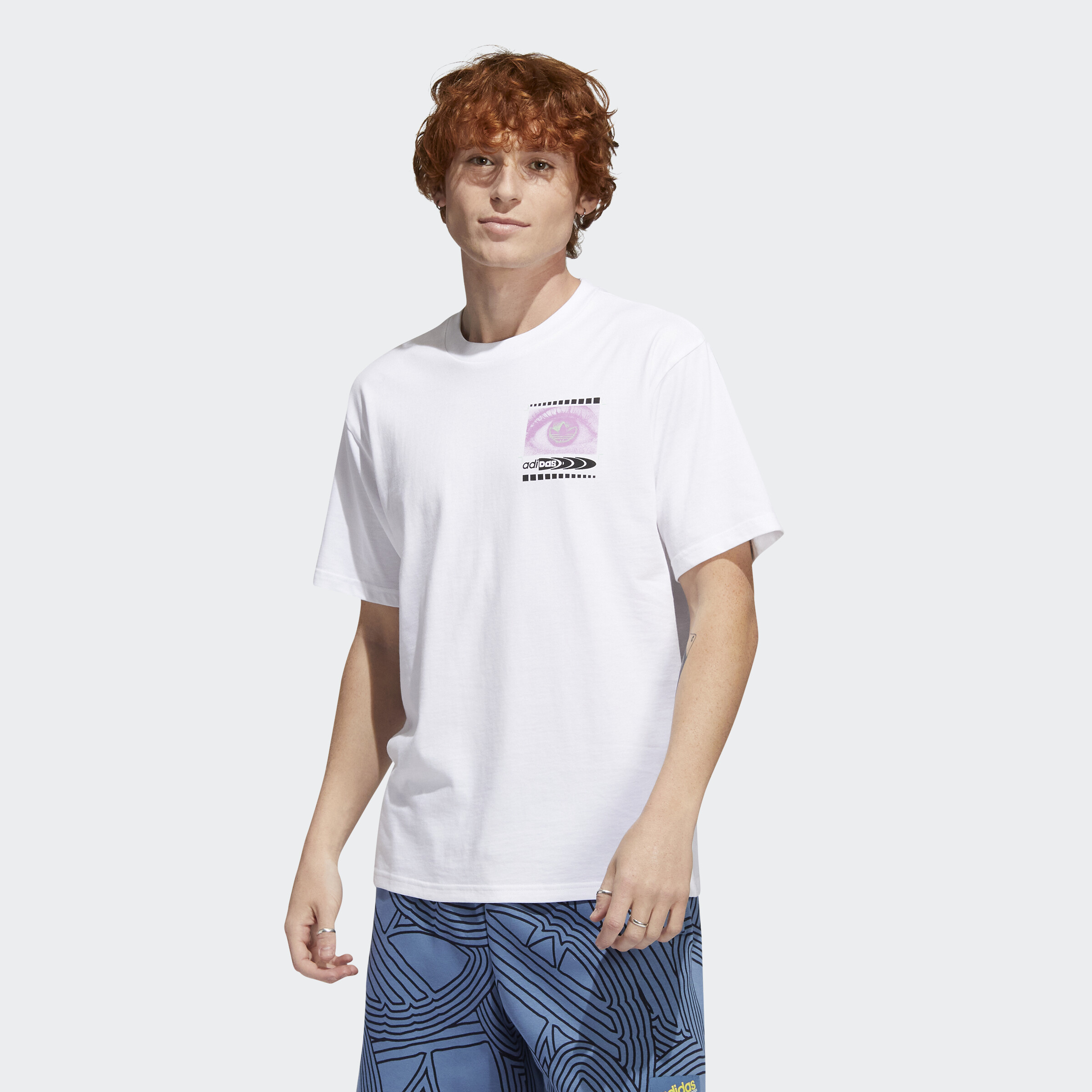 Take on a different side of life. This adidas t-shirt invites you to step into a new dimension, one where sport and music are woven together to create life beyond reality. Original artwork screenprinted on both sides delights the eye and intrigues the mind, representing a conceptual web that welcomes a fresh perspective. Made of pure, soft cotton, it gives you all-day comfort and the perfect fit. Our cotton products support more sustainable cotton farming.