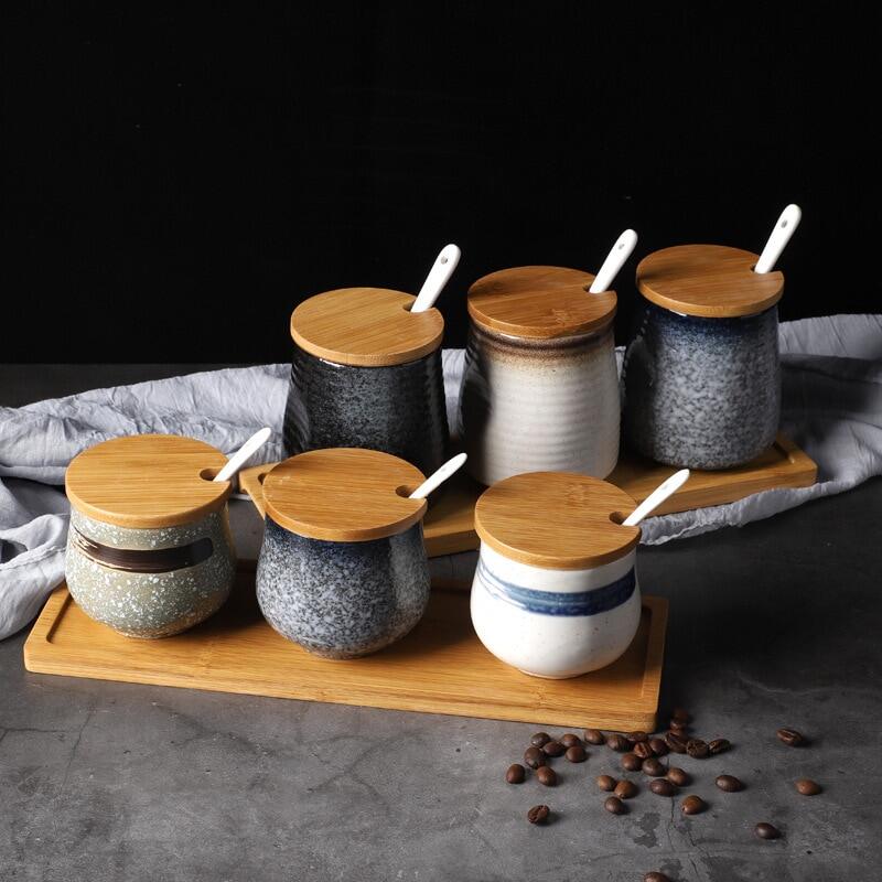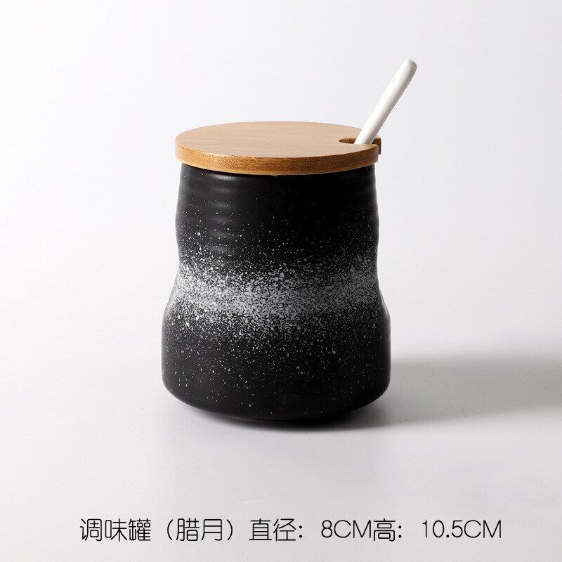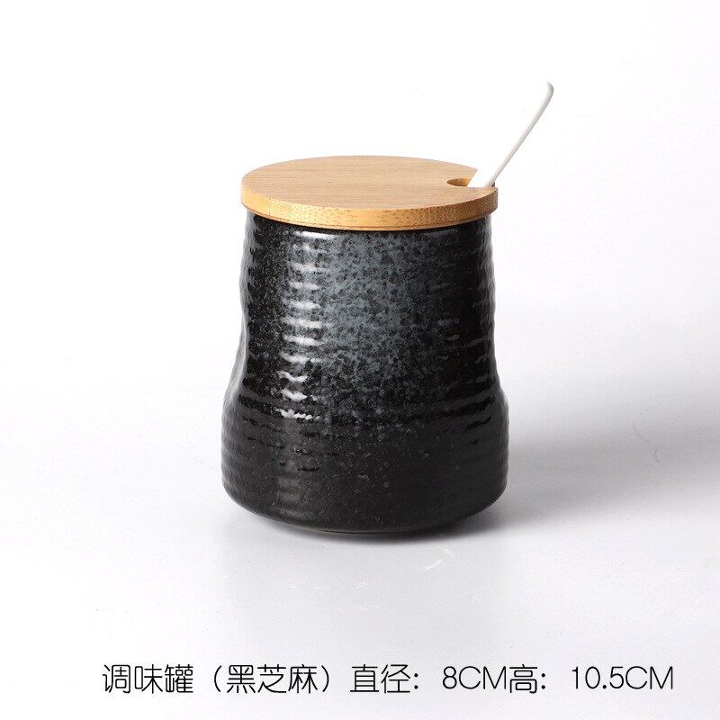 Creative Japanese-Style Ceramic Seasoning Jar Set Restaurant With Lid Spoon Salt Pepper MSG Jar Home Kitchen Seasoning Bottle